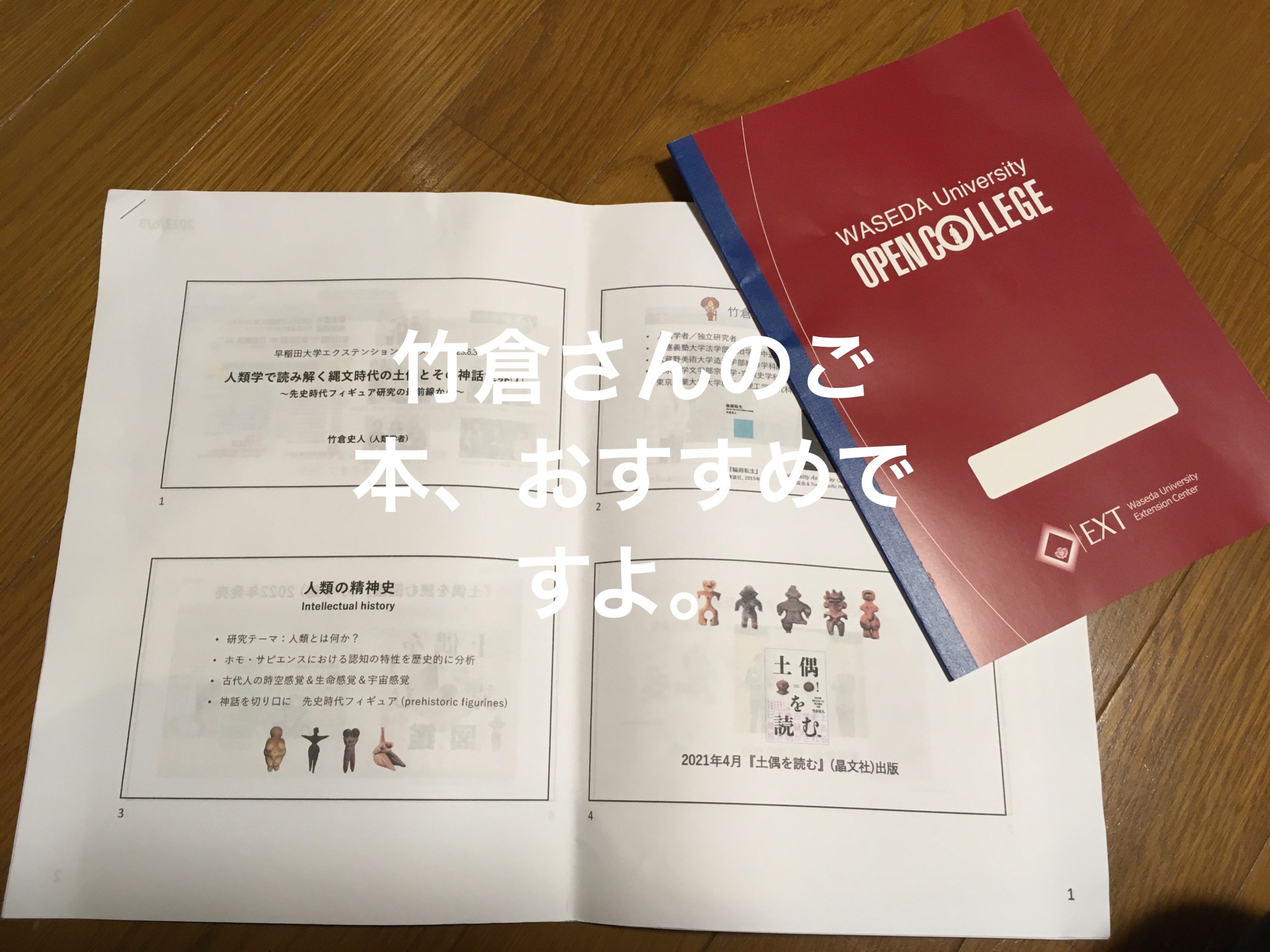 竹倉さんの「土偶を読む」を読んで、土偶はこれだったのだ、と確信したので、FBでお友達になってもらい、今回の授業も受けようと思ったのでした。